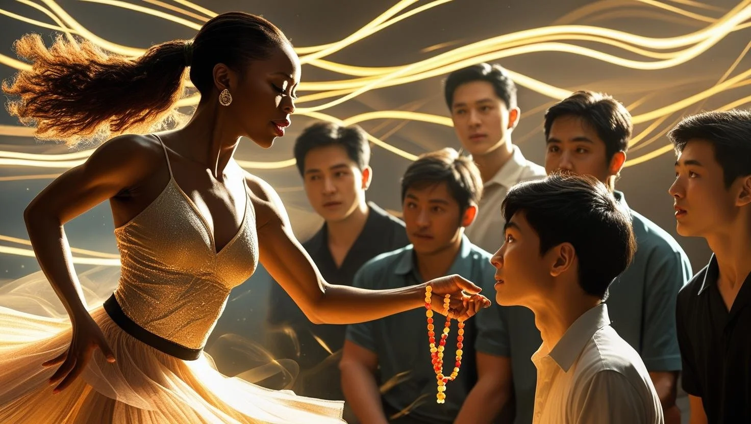 The music composed by Jack finds its way into the heart of a dancer named Isabella, who has struggled with self-doubt and the pressure to succeed in the competitive world of dance. When she hears the song that Jack created, she feels the rhythm of the bead’s journey coursing through her. Isabella dances with grace and fluidity, each movement a reflection of the love and connection that the bead symbolizes. Her performance, set to Jack’s music, becomes a sensation, and people from all over the world come to witness her dance. She passes the bead to a young dancer who is just starting out, believing that it will guide them to find their own unique rhythm.