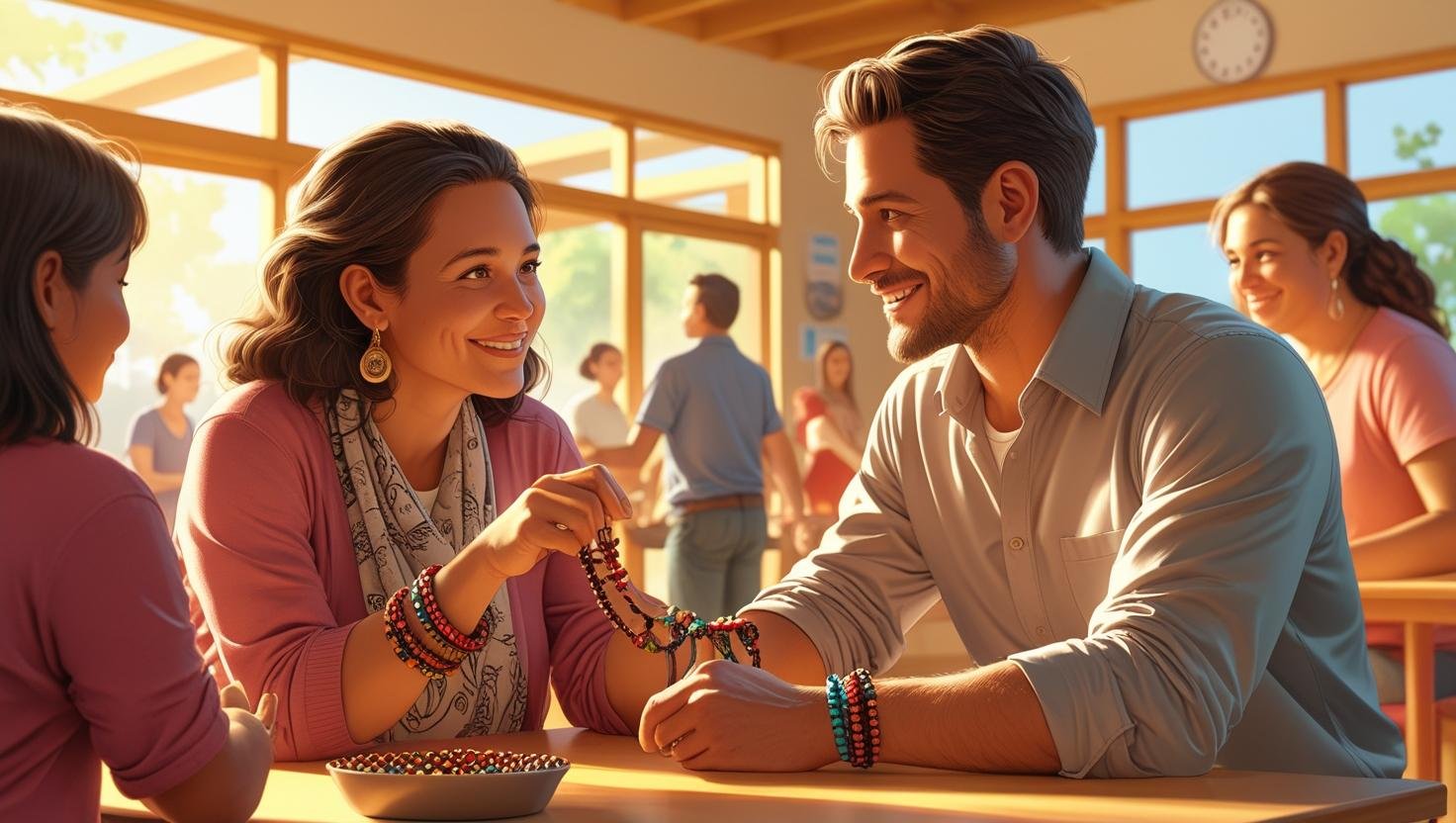 Rachel’s parenting style inspires an entrepreneur named Oliver, who has spent his career building businesses but never thought deeply about the emotional impact of his work. After meeting Rachel, he realizes that success isn’t just about profit—it’s about creating a positive impact in the community. Oliver begins building companies that prioritize employee well-being, emotional support, and giving back to the community. The bead he receives becomes a reminder of his commitment to creating a business that is grounded in love and connection.