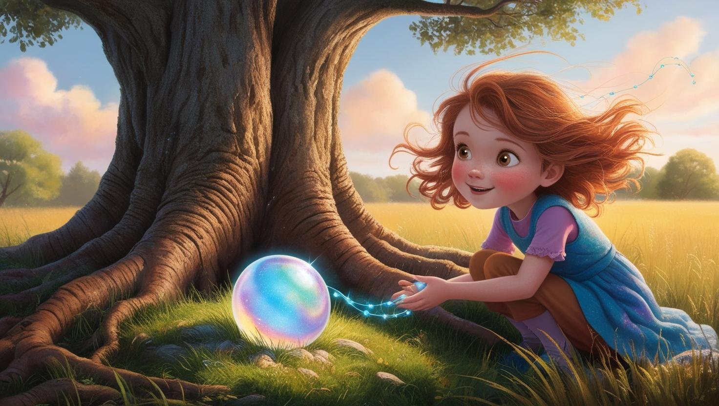 A young girl named Iris, who loves to wander the fields near Eliza’s home, discovers the bead one morning. The bead is nestled in the roots of the old tree, its glow faint but unmistakable. Iris, with her pure heart and curious spirit, knows that the bead has found its way to her for a reason. She feels a deep connection to all the people who have touched the bead before her. Iris keeps the bead close, and every night, she dreams of a world where everyone is connected by threads of kindness.